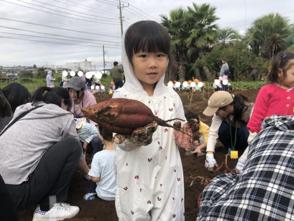 今年のおいもはとっても大きいので、お母さんと力を合わせたり、お友だちと一緒に掘ったり、一生懸命掘りました。抜けたおいもを持ったお友だちの表情…嬉しそうですね♪どんなお料理に変身するのかな?楽しみだね(o^―^o)
